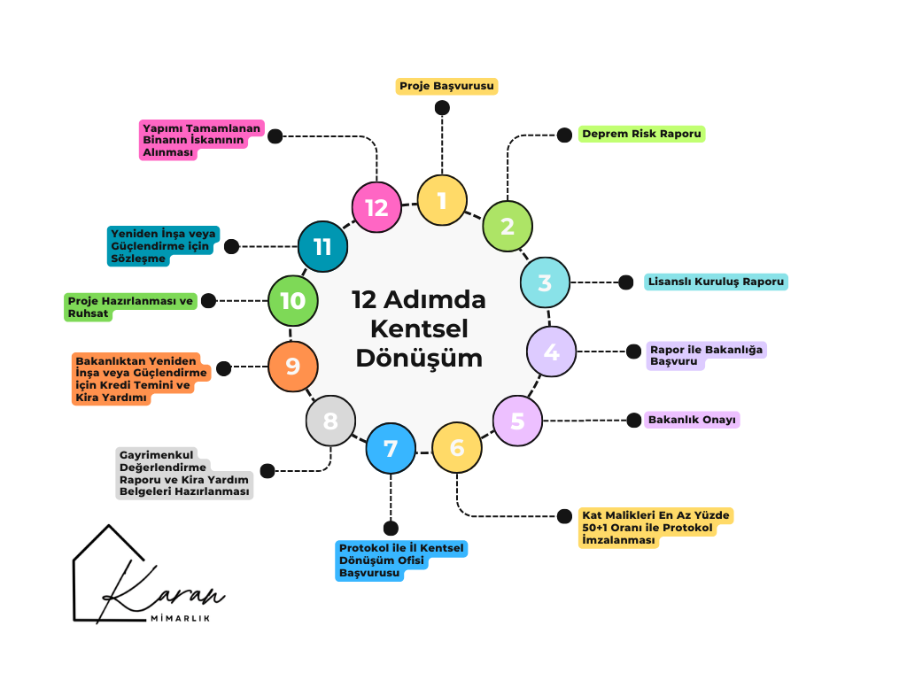 Kentsel dönüşüm süreci, bir binanın deprem riskine karşı güvenli hale getirilmesi amacıyla belirli aşamalardan oluşur. İlk adım, mevcut binanın mimari ve statik projelerinin belediyeden veya tapu müdürlüğünden temin edilmesidir. Bu belgeler hazırlandıktan sonra, bina deprem risk raporu almak için gerekli dokümanlar ile yetkili kentsel dönüşüm kuruluşlarına başvurulur. Bu kuruluş, binada kapsamlı bir teknik inceleme yaparak binanın deprem riski taşıyıp taşımadığını belirten bir rapor hazırlar.